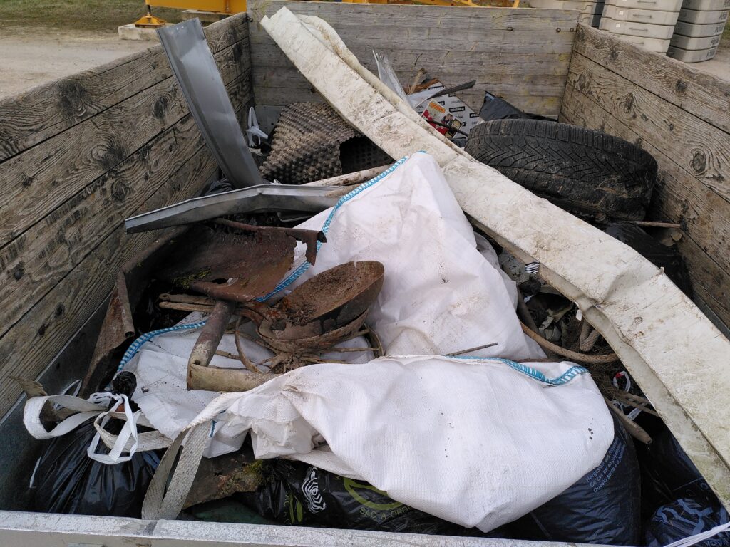 Au total, ce sont 1540 litres de déchets qui ont pu être récoltés (respectivement 265, 1075 et 200 litres pour chacune des trois actions), de la ferraille, un pneu, un grand sac pour déchets verts, une bâche et une grosse structure en bois et en métal (probablement un élément de vieille porte). La quantité de déchets ramassés s’inscrit dans le même ordre de grandeur que les années passées, en regard du nombre de bénévoles sur le terrain. Hormis certains secteurs où de gros déchets ont été retrouvés, notamment des éléments de ferraille, la récolte est majoritairement composée de lingettes et d’autres produits hygiéniques.