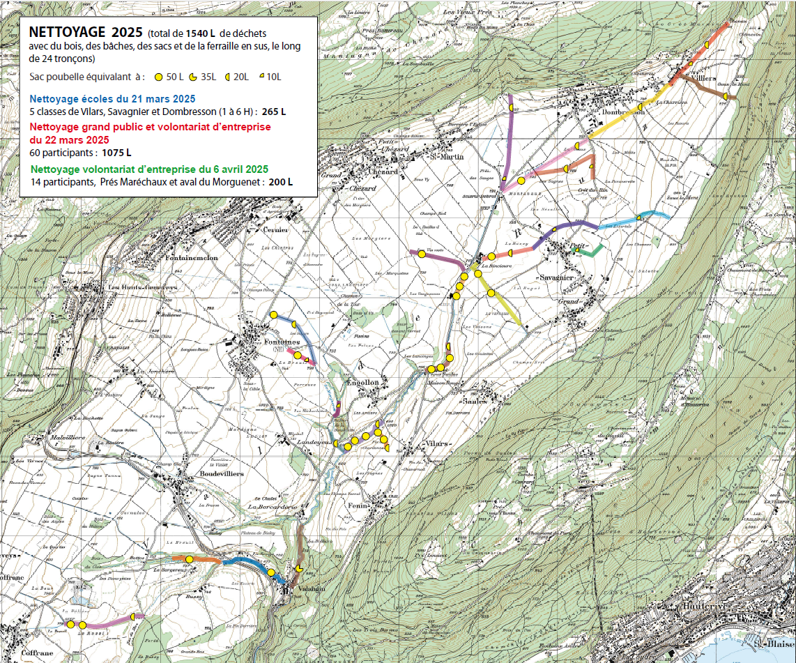 Cette année, le nettoyage organisé annuellement par notre association depuis 1998 s’est déroulé en trois temps. Le vendredi 21 mars, cinq classes du Cercle scolaire de Val-de-Ruz (CSVR) encadrées à chaque fois par un·e membre de l’association ont participé à l’action. Le lendemain, une soixantaine de bénévoles ont arpenté les berges de la vallée à la recherche de déchets. Enfin, dans le cadre d’une action de volontariat d’entreprise, quatorze bénévoles encadré·es par deux membres de l’association ont nettoyé le secteur des Prés Maréchaux le vendredi 4 avril.